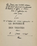 Luc DIETRICH. — Le Bonheur des tristes. — Paris, Denoël, 1935. — In-12, demi-maroquin marron à coins, dos lisse, tête dorée, couverture et dos (Jandel).