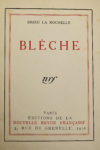 Pierre DRIEU LA ROCHELLE. — Blèche. — Paris, NRF, 1928. — In-4, vélin coquille d’œuf, dos lisse avec motifs peints, tête dorée, couverture (Reliure un peu postérieure).