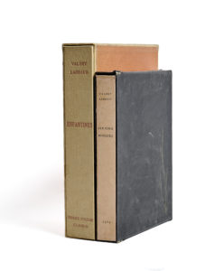 Valery LARBAUD. Fermina Márquez. Paris, Les Pharmaciens bibliophiles, 1961. In-4, en feuilles, chemise et étui. 25 lithographies originales en couleurs dans le texte de Pierre-Eugène Clairin. 1/195 vélin de Rives, celui-ci imprimé pour Madame Declœdt (n° 31). Étui un peu abîmé.