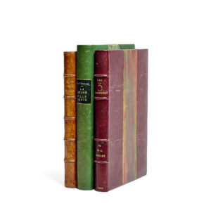 – Les Trois impostures. 1929. Demi-chagrin bordeaux à bandes, dos à 4 nerfs, tête dorée, couverture et dos (E. & A. Maylander).