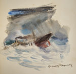 [FOUQUERAY]. — Joseph CONRAD. — Typhon. — Lyon, Association lyonnaise des cinquante, 1928. — Fort in-4, maroquin brun, dos à 2 doubles nerfs avec filet gras doré et le titre à la chinoise mosaïqué de maroquin vert, encadrement intérieur...
