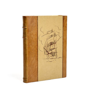 [FOUQUERAY]. — Jack LONDON. — Les Mutinés de l’Elseneur. — Paris, Kieffer, 1934. — In-4, demi-peau chamois à bandes, plats de parchemin (?) avec grand bateau à froid sur le premier, dos à 3 nerfs, tête dorée, premier plat de...