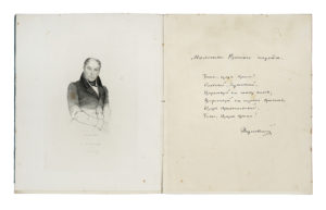 L'vov [Lvoff] Aleksey Fyodorovich, Dedica autografa di L'vov su libro, con spartito musicale, del primo inno nazionale russo. Dedica datata 1855.