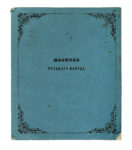 Libretto a stampa, in russo, tedesco e francese. Cinque carte e una velina. Con dedica autografa al cantante Calzolari a penna nera di Aleksej L'vov, in francese, datata 7 febbraio 1855. Legatura in brossura azzurra con il titolo in russo Preghiera del popolo russo. Ottime condizioni. Dimensioni 200x240 mm. (1) Questo primo inno nazionale russo è stato composto nel 1833, su richiesta dello zar Nicola I. L'incipit Dio salvi lo Zar si rifà all'inno inglese. Le parole, sei strofe, sono del poeta Vasilij Žukovskij, e la musica è del compositore Aleksej L'vov. Nelle pagine troviamo: i ritratti litografici di Žukovskij e L'vov (raffigurato in divisa da generale); i facsimili del testo autografo della "preghiera" Bože, Zarja chrani! con la firma di Žukovskij e dello spartito, datato San Pietrobrurgo, 25 dicembre 1833 con la firma di L'vov; il testo dell'inno in tedesco e francese. La preghiera messa in musica recita: Dio salvi lo zar! / È potente e saggio / Egli regna per la nostra gloria / Egli è formidabile contro i nostri nemici / La fede lo guida / Dio salvi lo Zar! Aleksej L'vov è stato compositore e violinista. La sua musica per questo inno sarà ripresa nel 1880 da Čajkovskij, nell'Ouverture 1812.