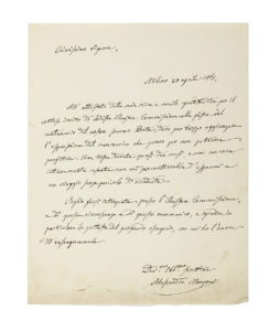 Manzoni Alessandro, Lettera autografa firmata. Datata 28 aprile 1865, Milano.