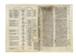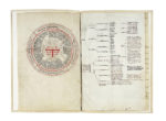 Manoscritto pergamenaceo a inchiostro bruno e rosso con titoli rossi e capilettera rossi e blu, composto da due fascicoli, in totale 4 fogli scritti recto e verso. Il primo fascicolo potrebbe essere di epoca anteriore rispetto al 1463. Scrittura gotica corsiva con moltissime abbreviazioni nel testo. Fogli compilati da mani differenti. Testo in latino. Nel primo foglio sono presenti due disegni (recto e verso) che rappresentano le rose dei venti medievali con indicazioni geografiche, astrologiche e mediche. Il secondo foglio contiene due diagrammi, uno di ambito medico. Il secondo fascicolo riporta in fine il nome del compilatore: Marsilio Sch[...], e il luogo: Padua. E' presente anche un diagramma astrologico in fine al manoscritto. Legatura moderna in pergamena. Carte di guardia moderne. Dimensioni: 200x305 mm. (1) Il manoscritto contiene: Primo fascicolo - Foglio 1r: la rosa dei venti, disegnata a inchiostro nero e rosso, presenta una stella centrale inserita in alcuni cerchi concentrici. Nel primo cerchio (dall'esterno) sono indicati i venti secondo l'antica nomenclatura romana: vulturnus, subsolanus, eurus, euronothus, nothus, libonothus, lybis, zephirus, chorus, cyrcius, septemprio, aquilo; nel secondo troviamo i punti cardinali in notazione greca e latina: anatole / oriens, mesembris /meridies, dysis / occidens, arctos /septemtrio; nel terzo, i nomi latini delle costellazioni; nel quarto, i mesi latini; nel quinto, i quattro elementi, associati alle fasi della vita: aer / infantia humida et calida, ignis / juventus calida et sicca, terra / senectus sicca et frigida, aqua / decrepitas frigida et humida. Foglio 1v: Una seconda rosa dei venti, sempre disegnata a inchiostro nero e rosso, è formata da cerchi concentrici e suddivisa in 12 settori, cui corrispondono altrettanti venti. La provenienza dei venti è indicata nel cerchio più interno: Asia, Africa, Europa. Di ogni vento, indicato secondo l'antica nomenclatura romana, sono indicate varie caratteristiche e l'effetto sulla temperatura: gelidus, calidus, temperatus ecc. Foglio 2r: Diagramma dal titolo: Viginti sunt colores urinarum quorum quidam significant. Foglio 2v: Diagramma a inchiostro bruno e rosso contenente cerchi nel quali vengono indicati dieci generi (genere super continent quam confidant [...] quantitatem, dimensionum [...] longitudine, latitudine [...]) dai quali si sviluppano la forza e la debolezza, la velocità e la lentezza, l'ordine e il disordine, il caldo e il freddo ecc.