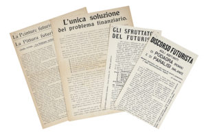 Marinetti Filippo Tommaso, L'unica soluzione del problema finanziario. [Segue: Il Futurismo e la Guerra. Cronaca sintetica]. Milano: Direzione del Movimento Futurista, 11 dicembre 1915 [i.e. 1916?].