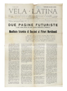 Boccioni Umberto, Vela Latina. Manifesto di Boccioni ai pittori meridionali. (Anno IV, n. 4). Napoli: Vela Latina, 5 febbraio 1916.
