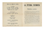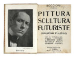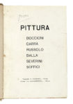 In-folio (mm 628x 436). Carta [1] stampata recto-verso. Esemplare fiorito, con strappetti marginali e lievi bruniture ai punti di antica piegatura. Annotazione manoscritta al recto e due splendide parole in libertà di Marinetti e Cangiullo al verso. SI AGGIUNGE: Id., Pittura scultura futuriste (dinamismo plastico) con 51 riproduzioni, quadri, sculture di Boccioni, Carrà, Russolo, Balla, Severini, Soffici. Milano: Edizioni Futuriste di Poesia, 1914. In-16° (mm 186x135). Pagine [8], 469, [3] (di 5) con 1 ritratto fotografico di Boccioni in antiporta e 6 (di 51) riproduzioni in bianco e nero di quadri e sculture su carta patinata. Rinforzi marginali all'occhietto, al ritratto e alle pagg. da 465 in poi; maldestri restauri ad alcune carte. Esemplare rifilato, con fioriture sparse. Mancanti 45 (di 51) tavole in bianco e nero fuori testo. Legatura successiva in mezza tela, con titoli in oro su tassello al dorso e sguardie rinnovate; entro cofanetto in cartonato, con la scritta Boccioni applicata al dorso. Ex-libris cartaceo al contropiatto anteriore e al recto del ritratto dell'Autore. Dedica autografa di Umberto Boccioni. Esemplare da studio. SI AGGIUNGE: Id., La pittura futurista. Manifesto tecnico. Milano: Poligrafia italiana, 11 aprile 1910. In-4° (mm 290x230). Carte [2]. Segno centrale di precedente piegatura e lievissimi strappetti marginali, altrimenti ottima conservazione. (3) I OPERA: Rara edizione originale di quest'opera che riflette su pregi e difetti della meridionalità italiana, soffermandosi sulla situazione artistica napoletana, che prende le mosse dalla conferenza tenuta da Boccioni il 16 gennaio 1916, nella quale furono coinvolti un ampio numero di artisti napoletani non direttamente legati al futurismo. Tra questi, il paesaggista Giuseppe Casciaro che fece stampare e diffondere assieme a Francesco Cangiullo una cartolina di invito a leggere il manifesto pubblicato su Vela latina. Con due splendide parolibere di Marinetti e Cangiullo al verso. II OPERA: Prima edizione di questo fondamentale trattato sulla pittura futurista, lo scritto più importante di Boccioni, corredato da un imponente apparato iconografico (qui in gran parte assente) e impreziosito dalla dedica autografa dell'Autore. Cfr. Cammarota 40.1; Salaris 23b. III OPERA: Echaurren Pablo, Futurismo. Collaudo 1909-2009 (catalogo di vendita). Milano: Libreria Antiquaria Pontremoli, 2009, 12: «Seconda edizione, firmata dal quintetto definitivo dei pittori futuristi (Boccioni, Carrà, Russolo, Balla e Severini). Il manifesto si conclude a p. [3], mentre in ultima pagina compare l'organigramma della Direzione del Movimento Futurista, suddiviso nelle sezioni di Poesia, Pittura, Musica, Scultura, Azione Femminile, Arte dei Rumori». La reale data di pubblicazione non è l'11 aprile del 1910 ma la fine del 1911 o l'inizio del 1912, come risulta evidente dall'indirizzo della sede del Movimento Futurista, spostatosi da Via Senato 2 a Corso Venezia 61.