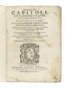 Statuti, capitoli, et constitutioni, dell'Ordine de' Cavalieri di Santo Stefano [...] pubblicati nel capitolo generale di detto Ordine, l'anno 1590. In Fiorenza: nella stamperia di Filippo Giunti, 1595.