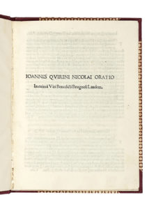 Querini Giovanni (di Nicolò), Oratio in eximii viri Benedicti Brugnoli laudem. [Venezia: dopo il 1502].