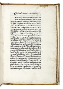 In-4° (mm 206x139). Carte: [16]. Carattere romano. Trascurabili macchioline lungo i margini, ma per il resto buona copia rilegata in tempi moderni con pergamena antica. (1) Rarissima pubblicazione incunabola, di diritto canonico. BMC IV, 70 (altra ed.); Hain 15105 (altra ed.); Goff S-806 (altra ed.).