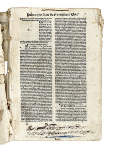 In-folio (mm 299x200), in 2 parti. Data al primo colophon: 19 dicembre 1498. Carte: 195, [1]. Assente il primo fascicolo a di 2 carte con il frontespizio e la Tabula articulorum, ma presente l'ultima bianca. Testo in gotico su due colonne. Tracce del tempo alle prime due carte, fascicolo finale con ampio alone pallido, e altre trascurabili tracce del tempo, corpo del testo staccato dalla legatura e slegato in punti, con molte carte sciolte, ma nel complesso copia molto fresca internamente, in pergamena flessibile coeva con titolo calligrafato al dorso (difetti). Numerose postille di antica mano tra la prima e la seconda parte. (1) Prima e unica edizione incunabola di questa analisi aristotelica della Creazione e della natura dell'uomo. La prima parte include discussioni su materia, causalità, tempo, movimento delle sfere, caratteristiche degli angeli, ecc. Tra le questioni considerate nella seconda parte ci sono l'anima contro il corpo, i sensi e le percezioni umane, i sogni e le fantasie, le emozioni, l'intelletto, il libero arbitrio e la possibilità di altri mondi. ISTC ia00334000; IGI 238; GW779; BMC V 574; H *569; Goff A-334.