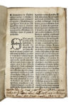 In-8° piccolo (mm150x102). Carte: [33, di 34? Collazione A-D8, E1]. Carattere gotico, 32 linee su due colonne. Frontespizio supplito in facsimile dall'edizione del 1542, copia da studio. Pergamena flessibile antica rimontata. (1) Rarissima edizione probabilmente incunabola di questo testo sul bello scrivere, talvolta attribuito anche a Cristoforo Landino.