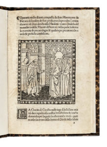 In-4° (mm 185x125). Carte: [30], collazionato completo. Qualche macchiolina, pallida gora e altri minimi segni del tempo, restauro quasi impercettibile all'angolo superiore esterno della prima carta. Iniziali xilografiche e due eleganti xilografie alla prima ed ultima carta raffiguranti il Savonarola a colloquio con la badessa e le consorelle del Monastero delle Murate e in fine la scena della Crocifissione con la Vergine, San Giovanni e Maria Maddalena. Sguardie rinnovate e legatura in piena pelle maculata, tagli spruzzati di rosso. (1) ISTC is00224000; Goff S224; HCR 14443; Krist 377b; Sander 6803; IGI 8748; BMC VI 650; GW M40387.