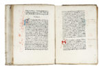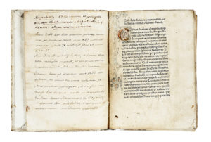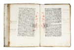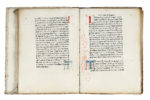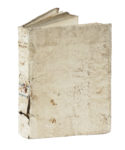 In-8° (mm 192x137). Carte: [119, di 120, assente b1, supplita in fotografia]. Testo in romano con iniziali miniate in rosso e blu, alcune con svolazzi lungo i margini (talvolta un po' sbiadite, come quella all'incipit). Strappo alla prima carta, forellino con piccola perdita alla penultima carta, ultima carta con grande restauro e un paio di parole manoscritte, e altre tracce del tempo. Cerniera anteriore spaccata, corpo del testo un po' slegato e con qualche carta sciolta. In cartonato rustico antico (difetti). (1) Seconda edizione, rarissima sul mercato, di questa raccolta di meraviglie composta da Gaio Giulio Solino, scrittore romano vissuto fra la prima metà e la fine del III secolo. Nel medioevo questa stessa opera fu nota anche sotto i titoli di Polyhistor e De mirabilibus mundi. Solino attinge a piene mani dalla Naturalis historia di Plinio il Vecchio, dalla Chorographia di Pomponio Mela, dall'opera di Svetonio e altri. Leggendoli, avrebbe annotato le cose più strane e meravigliose inerenti a popoli, usanze, animali e piante illustrandole all'interno di una cornice geografica. Il testo è dedicato ad un certo Aventus, forse uno dei consoli per l'anno 258. Seguono una trattazione sulla storia di Roma dalle origini al principato di Augusto e un'analisi dell'Italia, della Grecia, delle regioni intorno al Mar Nero, della Germania, Gallia, Britannia, Spagna, le province dell'Africa, l'Arabia, l'Asia minore, l'India e l'impero dei Parti. Il tema meraviglioso del libro e la sua estensione molto ridotta rispetto alle opere di Plinio il Vecchio ne decretarono il successo nel medioevo. La sua popolarità è attestata dalla sopravvivenza di oltre 150 manoscritti dal IX secolo in poi. ISTC is00616000; Goff S616; HC 14874*; IGI 9085; BMC IV 59; GW M42824.