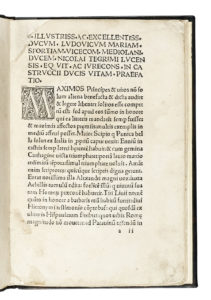 Tegrimi Niccolo, Castruccii Antelminelli Castracani lucensis ducis vita. (Al colophon:) Impressum Mutinae: per M. Dominicun Rocociolam, 1496 Die xx Aprilis.