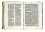In-folio (mm 301x200). Carte: [154]. I primi 3 fascicoli non rilegati, copia con pallido alone al margine inferiore e macchiette, le ultime carte leggermente più difettose a causa di restauri, arrossature e altri segni d'uso. Piena pergamena di riuso seicentesca staccata e altri minimi difetti, con titoli manoscritti al dorso e al piatto anteriore. (1) Rarissima edizione quattrocentesca del commento di San Tommaso d'Aquino alla celebre "Metafisica" di Aristotele. ISTC it00246000; Goff T246; HC 1509; IGI VI 828-A; Sander 7273.