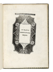 Avogadro Pier Donato, In triduo lamentationis sermo. (Al colophon:) Impressum Verone: per Lucam Antonium Florentinum, 1504 die 23 marzi.