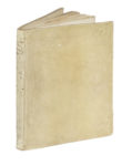 3 parti in 1, in-4° (mm 208x155). Pagine: [8], 162, [2]. Marca editoriale al frontespizio e a carta L8r. Assenti le carte F4, F5 e le due carte di tavole ripiegate. Copia con pallide gore e macchiette, leggermente brunita, bruciatura al fascicolo B e alla carta C1 con perdite di testo, altri minimi segni del tempo. Piena pergamena rigida con titoli manoscritti sul dorso e qualche lavorino di tarlo. (1) Interessante trattato sull'arte della tavola e della presentazione delle pietanze nei banchetti. In quest'opera Vincenzio Cervio, un tempo trinciante di casa Farnese, consiglia il corretto trattamento delle varie pietanze come carne, pesce, selvaggina ma anche semplicemente di un uovo e della frutta da presentare alla tavola del proprio Signore.