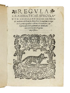 Fonticolano Biagio Pico, Regula grammaticae speculativae excellentissimi artium & medicinae... Al colophon: (Venetijs: sumptu & requisitione domini Melchioris Sessae, 1539 mense Aprilis).