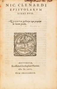CLÉNARD (Nicolas). Epistolarum libri duo. Anvers, Christophe Plantin, 1566. 2 parties en un …