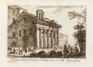 CORTONESE (l'abbé Ridolfino Venuti). Accurata, e succinta descrizione topografica delle Antichita di Roma. Rome, Battista Bernabo e Giuseppe Lazzarini, 1763. 2 parties en un volume in-4, demi-veau fauve, dos orné, pièce de titre bleue, tranches rouges (Reliure de l'époque). Édition originale, ornée d'un plan dépliant et de 96 belles planches gravées sur cuivre représentant des vues de monuments de la Rome antique, dont quelques-unes sont signées de Piranèse. Bel exemplaire malgré les coins émoussés.