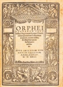 ORPHEUS. Argonauticon opus Graecum, cum interpretatione Latina incerti autoris. Bâle, Andreas …