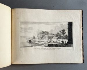 PARIS. Suite de 8 paysages et vues d'après nature, dessinés par Israël Silvestre et gravés par Perelle. S.l.n.d. In-4 oblong, demi-veau havane (Reliure vers 1880). Suite de 8 jolies gravures sur cuivre, représentant des monuments et des vues de Paris et des environs : la Tour de Nesle et l'hôtel de Nevers, l'église Saint-Martin des Champs, l'église Notre-Dame de Boulogne, le village et le pont de Charenton, etc. Légère mouillure sur le bord de la pl. n°2.