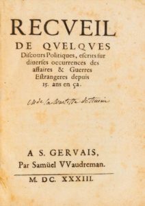 RECUEIL de quelques discours politiques, escrits sur diverses occurrences des affaires & guerres …