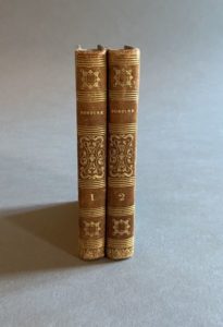 SADE (marquis de). Justine ou Les malheurs de la vertu. Londres [Paris, Cazin], 1792. 2 volumes in-12, demi-basane fauve, dos orné, tranches mouchetées (Reliure vers 1820). Troisième édition, très rare, publiée un an après l'originale in-8. Elle est illustrée de 6 figures érotiques. Exemplaire de la bibliothèque Courbin (ex-libris), ne présentant qu'une gravure sur 6, au tome II.