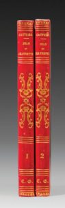 GAUTIER (Théophile). Jean et Jeannette. Paris, Baudry, s. d. [1850]. 2 volumes in-8, demi-veau cerise, dos lisse orné de filets dorés et de fers rocaille, chiffre doré en queue, tranches mouchetées (Reliure de l'époque). Édition originale. Charmante reliure décorée de fers rocaille.