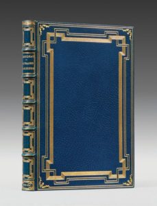 GOUDEAU (Émile). Paysages parisiens. Heures et saisons. Paris, Imprimé pour Henri Beraldi, 1892. Grand in-8, maroquin bleu roi, encadrement formé de trois jeux de filets dorés dont deux s'entremêlant dans les angles, dos orné de même, encadrement intérieur orné de huit filets dorés et de petits fers aux angles, tranches dorées sur témoins, couverture, étui (Chambolle-Duru). Illustrations composées et gravées sur bois et à l'eau-forte par Auguste Lepère. Tirage à 138 exemplaires numérotés sur papier vélin du Marais, celui-ci nominatif pour le comte de L'Aigle. Belle reliure de Chambolle-Duru.