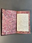 LAMMENAIS (Félicité de). Paroles d'un croyant. Paris, Renduel, 1834. In-8, demi-maroquin à grain long prune à coins, dos plat orné d'un encadrement de filet doré, non rogné (Reliure de l'époque). Édition originale. Quelques rousseurs. On a joint une lettre autographe signée (F. L.), Paris, 2 Août 1844, 4 pages in-12, à une amie à qui il envoie ses condoléances pour un deuil « Après tant d'années d'une vie toujours commune, même dans l'éloignement, voir tout à coup ces liens se briser, se sentir quasi l'ordre établi par une volonté dont nous adorons la Sagesse et par un amour dans le nôtre n'est que l'ombre ». A propos de la vie recluse d'une amie chez les Dames anglaises, dont les pensionnaires ne peuvent recevoir qu'à la grille : « Or quant à moi, j'ai l'horreur des grilles surtout lorsqu'on m'a tenu derrière. J'y ai laissé toute ma santé, c'est-à-dire ce que j'en avais. Je n'ai plus d'estomac et l'estomac ce sont les forces... ». Il parle longuement de sa vie, de ses occupations : « Les jambes me manquent. Elles me manquent bien plus encore à M. de Chateaubriand, c'est une vraie pitié... » etc.