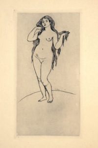 MALLARMÉ (Stéphane). Pages. Bruxelles, Edmond Deman, 1891. Grand in-8, broché, chemise à dos de maroquin vieux rouge et étui (Devauchelle). Édition en partie originale, ornée en frontispice d'une très belle eau-forte d'Auguste Renoir. Cette gravure à l'eau-forte fut l'une des premières réalisées par Renoir, peu sensible à ce mode d'expression (cf. François Chapon, Le Peintre et le livre, p. 25). Mallarmé prévoyait pour cet ouvrage qui, à l'origine, devait s'intituler Le Tiroir de laque, une riche illustration, et il avait admirablement choisi ses illustrateurs: J.-L. Brown, Degas, Renoir, Berthe Morisot, peut-être aussi Monet. Brown devait faire la couverture, «d'après une des plus belles personnes de Paris», Degas sans doute une danseuse, pour illustrer les pages sur le ballet (mais nous n'avons rien de précis), Berthe Morisot «Le Nénuphar blanc» et Monet «La Gloire». Tous se dérobèrent finalement, après des essais plus ou moins poussés, sauf Renoir: une belle eau-forte d'un nu opulent et à la chevelure ruisselante évoque en frontispice «Le Phénomène futur» (cf. Mallarmé, Correspondance, 1969, t. III, p. 10). Un des 50 exemplaires sur japon, les seuls qui contiennent le frontispice de Renoir en double état.
