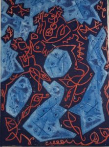 PAULHAN (Jean). Les Hain-Teny. S.l., Les Bibliophiles de l'Union française, 1956. In-folio, en feuilles, chemise, étui. Édition originale de cette traduction de poèmes malgaches. 10 eaux-fortes et aquatintes en couleurs de André Masson. Tirage à 116 exemplaires. Les gravures ont déchargé sur les pages voisines.