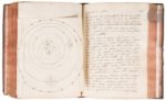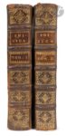 [MANUSCRIT]. Physica. S.l., vers 1730-1735. — 2 volumes in-4, 211 x 164. Veau brun, dos à nerfs orné, tranches rouges (reliure de l’époque). Important manuscrit en latin de plus de 400 pages pour le premier volume et de plus de 500 pour le second, de la première moitié du XVIIIe siècle. Il s’agit d’un cours de physique professé dans un collège jésuite, vraisemblablement à Louis le Grand. D’une écriture parfaitement lisible et presque sans rature, il comprend dans le premier volume tout ce qui concerne la physique des corps : principes et propriétés des corps, leurs places et leurs mouvements, le monde céleste. Le second volume porte sur les sens (la vue, la lumière, le phosphore, le système newtonien, le son, les odeurs, le toucher, la chaleur, etc.), les météores, les comètes, les astres, le magnétisme, etc. L’exemplaire comprend de nombreux dessins et schémas dans le texte, excepté un dépliant, ainsi que plusieurs vignettes gravées, découpées et collées. On y trouve également un frontispice gravé représentant une allégorie des sciences, légendé « Stant circum variæ Physicæ, Astronomia, Chymia, Anatomia, &c. », ainsi que deux planches gravées, l’une figurant diverses expériences sur le magnétisme, l’autre représentant divers instruments mécaniques. On trouve à la fin l’indication manuscrite : « A M.D. G.V.q.M », qui semble signifier « A M[ariae] D[ei] G[enetrici] V[irginique] Q[ue] M[atrici] », c’est-à-dire : « À Marie, Mère de Dieu, Vierge et Mère. » On a relié à la fin du second volume un feuillet gravé dépliant dont il ne subsiste que la partie inférieure, le reste ayant été déchiré. Ce morceau de feuillet porte cette indication imprimée : « Has Theses, Deo Duce, et Auspice Dei-parâ Virgine propungnabit Petrus-Renatus Floquet, Clericu Parisinus. In regio Ludovici magni collegio societatis Jesu. Die Veneris decima-quinta Julii 1735, à nona matutina ad undecimo. Pro actu publico » (« Ces thèses seront soutenues, avec Dieu comme guide et sous la protection de la Vierge Marie, par Pierre-René Floquet, clerc parisien, au collège royal Louis-le-Grand de la Compagnie de Jésus. Le vendredi 15 juillet 1735, de neuf heures du matin à onze heures, lors d’un acte public. »). Il pourrait s’agir, mais sans certitude, de Pierre-René Floquet, jésuite né à Paris en 1716 et mort à Québec en 1782. Le document est daté de juillet 1735, soit un an après son entrée au noviciat de Paris et un an avant qu’il n’enseigne la grammaire et les humanités au collège de Quimper. Il est tout à fait possible que ce manuscrit ait été composé par ce dernier, au moment de sa formation. Il fit par la suite sa théologie au collège de La Flèche (1740–1744) et arriva au Canada le 17 août 1744. « Après cinq années d’enseignement au collège des jésuites de Québec, il tenta la vie missionnaire à Sault-Saint-Louis (Caughnawaga) en 1749–1750, puis revint à Québec comme procureur du collège (1750–1756). En 1757, il remplaça le père Nicolas Degonnor comme supérieur des jésuites à Montréal ; il remplit cette charge jusqu’à sa retraite, en 1780, tout en s’occupant de la Congrégation des hommes de Ville-Marie et du ministère sacerdotal à la chapelle des jésuites » (Joseph Cossette, « FLOQUET, PIERRE-RENÉ », dans Dictionnaire biographique du Canada, vol. 4, Université Laval/University of Toronto, 2003). Exemplaire dans sa première condition. Frottements et épidermures, essentiellement à la reliure du premier volume, coins émoussés. Manque la coiffe inférieure du second volume. Plusieurs feuillets blancs découpés à la fin des deux volumes.