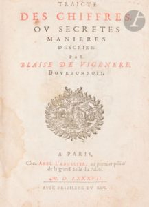 VIGENÈRE (Blaise de). Traicté des chiffres, ou secrètes manières d’escrire. Paris : Abel …