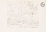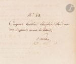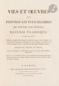 LANDON (Charles-Paul). Vies et œuvres des peintres les plus célèbres de toutes les écoles ; recueil classique, contenant L’Œuvre complète des Peintres du premier rang, et leurs Portraits ; les principales Productions des Artistes de 2e et 3e classes ; un Abrégé de la Vie des Peintres Grecs, et un choix des plus belles Peintures antiques ; Réduit et gravé au trait, D’après les Estampes de la Bibliothèque nationale et des plus riches Collections particulières. Paris : l’auteur, imprimerie de Chaigneau aîné, An-XIII-1805 - 1809. — 8 tomes en 4 volumes in-4, 297 x 226 : 40 pp., (1 f.), 4 pp., 1 portrait, 60 planches ; (5 ff. ), pp. 5-10, (1 f. blanc), 63 planches ; (4 ff.), pp. 11-14, (1 f. blanc), 59 planches ; 18 pp., (1 f. blanc), 53 planches ; (4 ff.), pp. 19-22, 62 planches ; (4 ff.), pp. 23-26, 51 planches ; (5 ff.), pp. 27-30, 62 planches ; (4 ff.), pp. 31-34, 64 planches. Demi-maroquin vert foncé à coins, filets dorés, dos à nerfs orné, tête dorée, non rogné (A. Bianchi, Nice, 1928). Ensemble de 8 des 25 tomes de ce recueil sur les peintres classiques. Il s’agit de la totalité de ceux consacrés au peintre Raphaël. Cet ouvrage fut publié par Charles-Paul Landon (1760-1826), peintre du cabinet du duc de Berry et conservateur des tableaux au musée du Louvre. Son ambition était de donner l’œuvre entière des plus grands peintres, en tout cas de réunir ce que la peinture a produit de plus parfait. Outre Raphaël, il consacra des volumes à Eustache Le Sueur, Dominiquin, Michel-Ange, Nicolas Poussin, Francesco Albani, Bandinelli, Daniel de Volterre, Jouvenet, Corrège, Léonard de Vinci, Titien, Le Guide, et Véronèse. Il était possible de se procurer à l’époque chacun de ces maîtres séparément, d’où le fait que l’on ne trouve que très rarement des ensembles complets. La partie consacrée à Raphaël est la plus vaste, répartie sur 8 tomes. Elle comprend une vie de l’artiste, précédée d’un portrait gravé de celui-ci, mais surtout 342 planches reproduisant les tableaux du maître, gravées au trait par de multiples artistes dont Pauline Landon (1786-1871) la fille de Charles-Paul. UN DES 250 EXEMPLAIRES AVEC LES GRAVURES AVANT LA LETTRE. Chaque tome porte une justification autographe signée de Landon en regard du titre. Cet exemplaire est le numéro 58. Dos passés. La planche 58 du premier tome est en double. Quelques rarissimes petites traces de mouillures claires sans gravité.