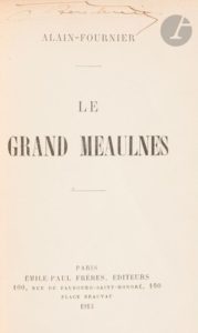 ALAIN-FOURNIER. Le Grand Meaulnes. Paris : Émile-Paul frères, 1913. — In-18, 183 x 115 : (4 …