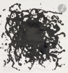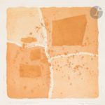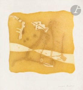 PAPART (Max) - RIBEMONT-DESSAIGNES (Georges). Le Sang, la sève, l’eau et les larmes. [Paris] : Jacques Goutal-Darly, [1968]. — In-4, 369 x 323 : (24 ff. 3 premiers blancs), couverture imprimée. En feuilles, couverture rempliée, emboîtage de l’éditeur. Édition originale de ce recueil de 5 poèmes de Georges Ribemont-Dessaignes, illustrée de 7 gravures originales de Max PAPART (1911-1994), dont 4 à pleine page. Tirage limité à 130 exemplaires signés par l’auteur et l’artiste. Précieux exemplaire de l’éditeur du livre Jacques Goutal, un des 15 hors commerce (n° V), imprimé comme les exemplaires de tête sur Auvergne à la main Richard-de-bas. Il est enrichi des pièces suivantes : - suite des gravures signées sur Auvergne à la main Richard-de-bas, - suite des gravures signées sur japon nacré, - 3 études originales et uniques pour l’ouvrage, justifiées et dédicacées par Papart à Jacques Goutal, - 7 planches refusées en épreuve d’essai, justifiées et signées par l’artiste, - une épreuve d’essai de l’une des gravures du livre, justifiée et signée par l’artiste, - 2 épreuves signées sur papier vélin de 2 des gravures du livre. Exemplaire très bien conservé. Provenance : Jacques Goutal.