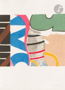 PAPART (Max) - CARAIRE (Andrée). Oiseau-solitude. Stockholm : Galerie A. H. Grafik, [1977]. — Grand in-folio, 665 x 500 : (28 ff. 2 premiers et 2 derniers blancs), 11 planches, couverture. En feuilles, couverture rempliée, emboîtage de l’éditeur. Édition originale des poèmes d’Andrée Caraire, illustrée de 10 lettrines gravées à l’eau-forte et 11 planches en couleurs gravées au carborundum par Max PAPART (1911-1994). Comme on peut le constater dans cet ouvrage, contrairement à la gravure en taille-douce, la gravure au carborundum n’entame pas la surface de la planche mais y ajoute des structures en relief. Tirage limité à 109 exemplaires sur papier à la cuve du Moulin de Larroque, signés par l’auteur et l’artiste, celui-ci faisant partie des 10 hors commerce, marqué C, comprenant les 11 planches numérotées et signées par Max Papart. Exemplaire très bien conservé.
