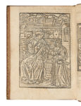 Cette troisième édition, datée de 1519, est la seconde donnée par le libraire parisien Michel Le Noir après l’originale brugeoise de 1477. Elle est illustrée d’un beau bois sur le titre représentant la roue de la fortune (déjà utilisé dans l’édition de Le Noir en 1505), ainsi que de 3 grands bois à pleine page in fine : deux personnages dans une bibliothèque, l’auteur écrivant son texte et la grande marque de Michel Le Noir (Renouard, Marques, n° 621). L’édition est également ornée de nombreuses lettrines xylographiques appartenant à plusieurs alphabets différents.