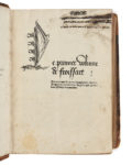Notre exemplaire comporte bien toutes les remarques de l’édition originale, à savoir la grotesque L à un seul visage sur les titres (Macfarlane, n° 4) et l’adresse primitive de Vérard à tous les colophons. L’édition est en outre ornée à la fin de chaque volume de la marque de Vérard (Macfarlane, n° LXXVII) et de petites lettrines qui conduisent ce bibliographe à proposer la date de 1495.