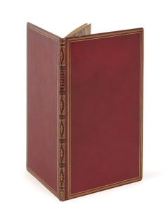 Plaquette in-16, maroquin rouge, triple filet doré en encadrement, dos à 5 nerfs joliment orné, dentelle intérieure, tranches dorées ( Trautz- Bauzonnet ).