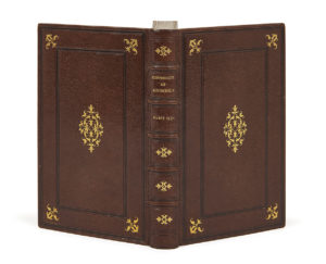 Paris, en la grãt salle du palais en la boutique de Galiot du Pré, 2 mai 1530. Petit in-8, maroquin marron avec double encadrement à froid dans le genre Du Seuil, fleurons d’angle et fleuron central dorés, dos à 5 nerfs orné de même, dentelle intérieure, tranches dorées sur marbrure ( Chambolle-Duru ).