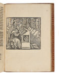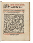 L’édition est ornée de plusieurs bois gravés. Le titre, imprimé en rouge et noir est illustré d’un bois représentant des soldats livrant bataille, 8 autres bois ornent les feuillets de texte, en réalité 5 bois différents, certains étant répétés. Cinq de ces bois qui sont de la main de Gabriel Simon avaient été utilisés pour Les Menus propos de la Mère Sotte de Pierre Gringore publiés chez Le Noir en 1525 (cf. le n° 188 du présent catalogue). L’exemplaire que nous présentons ne comporte pas de bois au verso du titre contrairement à celui de la BnF (Res-R-1198). Ce bois, imprimé tête-bêche, représente l’auteur lisant son livre avec l’allégorie de la Raison sur ses épaules.