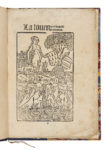Édition illustrée d’un grand bois sur le titre représentant une femme nue au bord d’une rivière tenant en laisse une licorne, devant un arbre supportant trois écus d’armes.