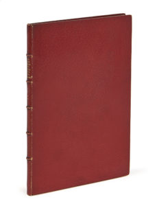 Plaquette in-16, maroquin janséniste rouge, dos à 5 nerfs, dentelle intérieure, tranches dorées ( Chambolle-Duru ).