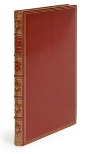 In-4, maroquin rouge, double filet doré, dos à 5 nerfs joliment orné aux petits fers, dentelle intérieure, tranches dorées sur marbrure ( David ).
